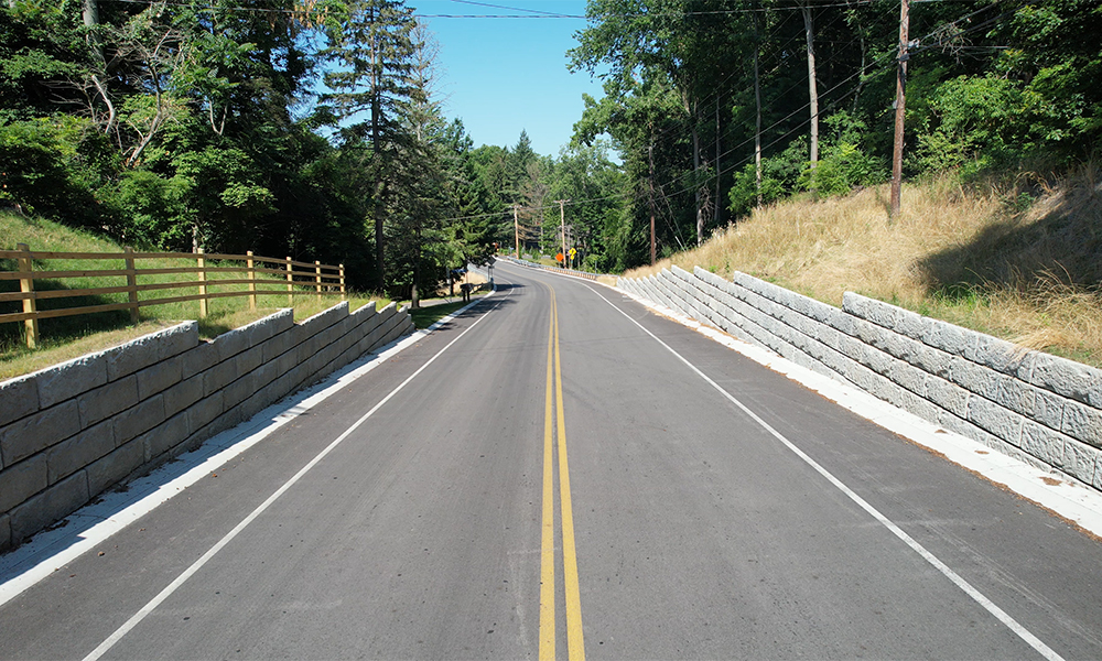 The Lake Road Phase II Improvement Project has completely transformed the transportation and infrastructure conditions within this affluent neighborhood in Monroe County. With an improved horizontal alignment and profile modifications, widened shoulders, a complete overhaul of the drainage system, replacement of a large culvert and removal of an abandoned railroad bridge, this project resulted in a critical improvement to safety along the corridor, and provides safe access for all users in this residential neighborhood.
